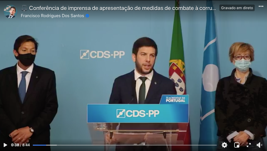 O que está em causa?O líder do CDS-PP apresentou um conjunto de propostas de combate à corrupção, entre as quais se destaca a tipificação de um crime de enriquecimento ilícito baseado na exclusividade de funções dos políticos. Francisco Rodrigues dos Santos admite vir a defender um regime de exclusividade obrigatória também para os deputados, sublinhando que "a maior parte" já exerce funções em exclusividade. Confirma-se?