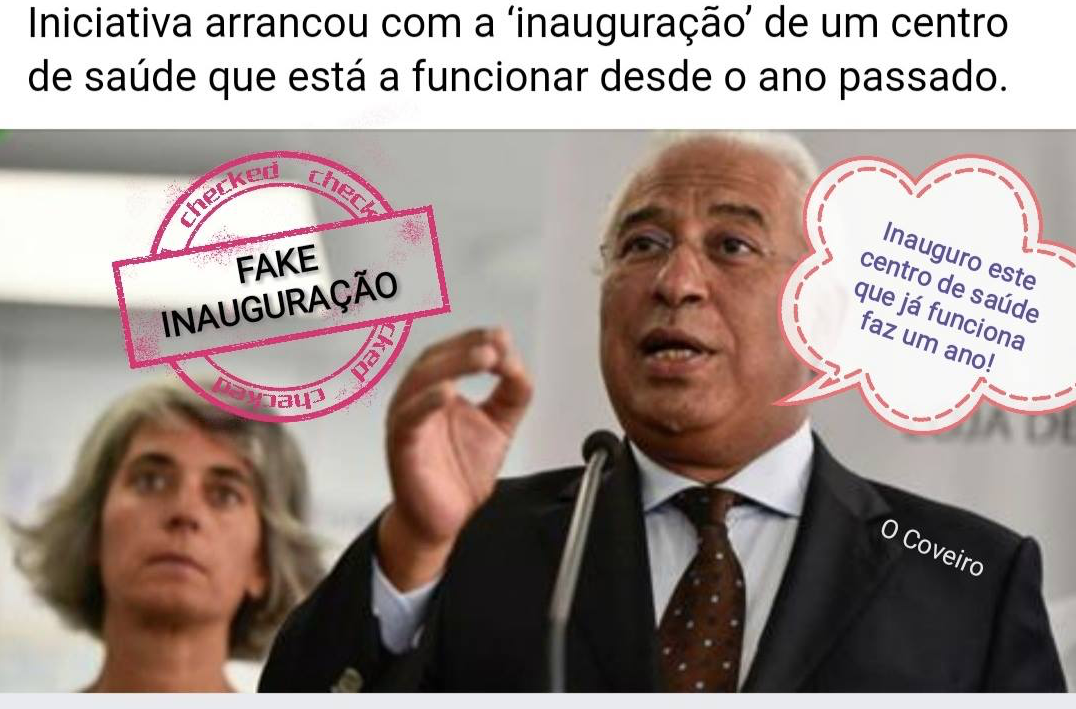Em reação a essa cerimónia, a página "O Coveiro" lançou um meme que está a viralizar nas redes sociais, denunciando o que classifica como uma "inauguração fake" (recorrendo a um aparente selo de fact-checking) do primeiro-ministro, pois o centro de saúde em causa "está a funcionar desde o ano passado".