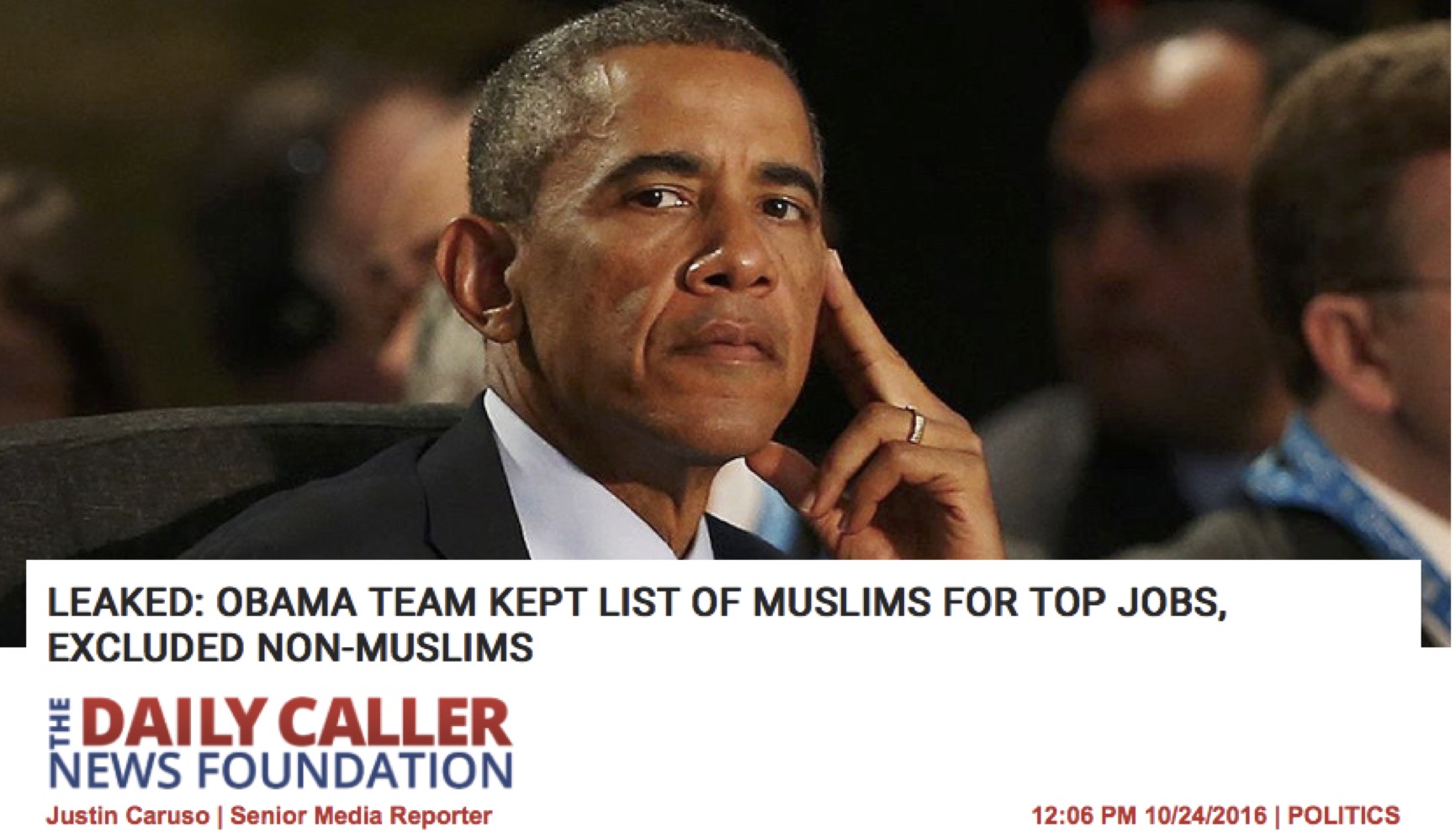 As redes sociais voltaram a incendiar-se com a partilha de uma história publicada em 2016 pelo jornal norte-americano Daily Caller, ligado à direita política. Em causa está a existência de uma lista de candidatos muçulmanos e asiáticos para assumir os cargos de topo da administração de Barack Obama, sendo referido que os candidatos católicos seriam excluídos.