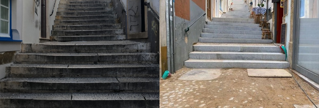 "A Câmara de Coimbra está a intervir com obras na zona Sé Velha e escadas do Quebra Costas, substituído as antigas escadas em calcário centenárias por escadas em granito, numa zona património da UNESCO, provavelmente sem autorização prévia do IPPAR, provavelmente sem acompanhamento de um arqueólogo. As escadas novas com inclinação, uma autêntica vergonha", pode ler-se numa mensagem enviada por um leitor ao Polígrafo, que solicitou que verificássemos a situação.