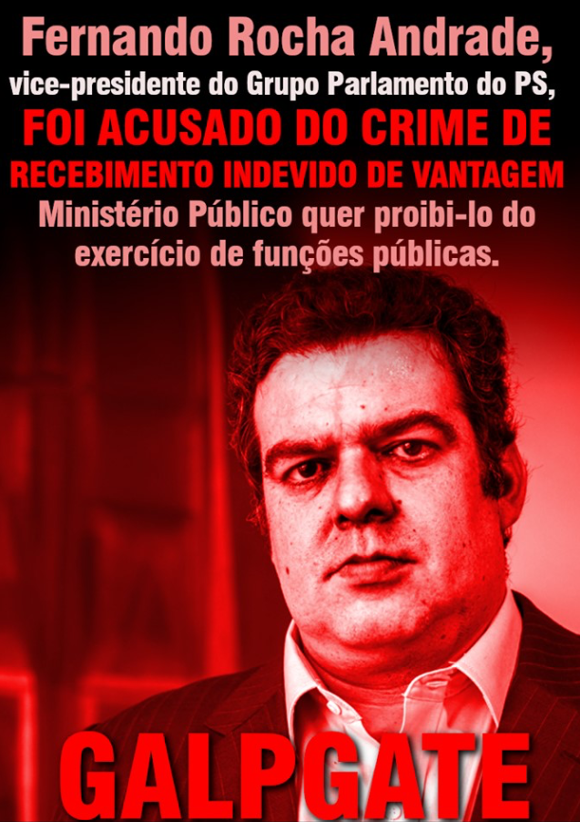 "Fernando Rocha Andrade, vice-presidente do Grupo Parlamentar do PS, foi acusado do crime de recebimento indevido de vantagem. Ministério Público quer proibi-lo do exercício de funções públicas", denuncia a publicação, já com largas centenas de partilhas acumuladas.