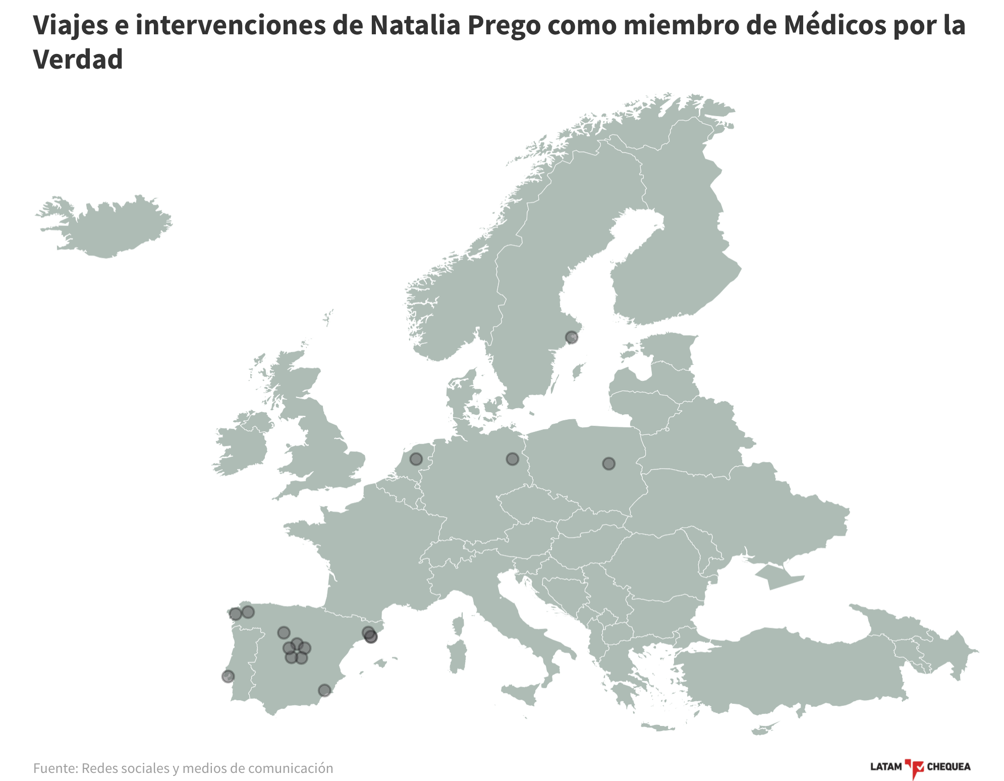 Pelo menos desde julho de 2020, Natalia Prego tem viajado por Espanha e outros países, intervindo em ações e manifestações em que minimiza o impacto da pandemia. Verificámos a realização de uma dessas ações no Hotel Colón Plaza, Valladolid, em 21 de agosto de 2020. O hotel confirmou que o local foi arrendado para a palestra, mas quem arrendou o espaço e por quanto "é um assunto privado".
